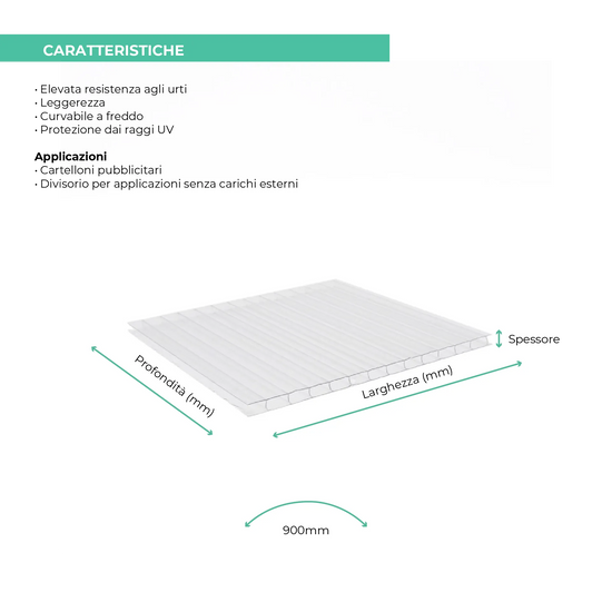 NB. Solo nel caso del policarbonato alveolare, è importante distinguere la base dall'altezza, poiché le righe dell'alveolare sono sempre parallele al lato dell'altezza.