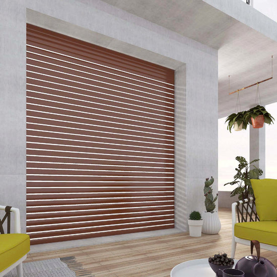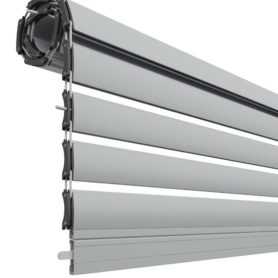 Tapparella avvolgibile frangisole antieffrazione in alluminio estruso. Un sistema innovativo e allo stesso tempo ingegnoso capace di combinare due caratteristiche opposte come l'antieffrazione e l'areazione che distanzia le stecche grazie a un sistema di bielle autobloccanti. Il grado di protezione è massimo, ben RC3, e le lamelle sono rinforzate con tondini in acciaio zincato e nastro in acciaio temprato antitaglio. Il blocco della tapparella è automatico e si inserisce ogni vola che la tapparella si chiude: le bielle autobloccanti si attivano simultaneamente fermando ogni tentativo di sollevamento. Resistenza al vento in classe 6.