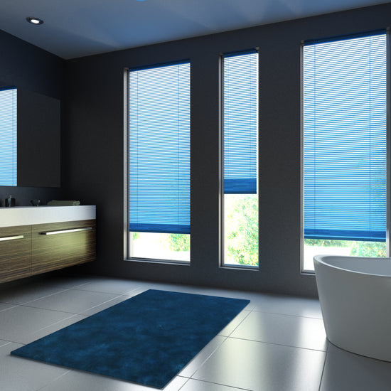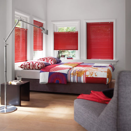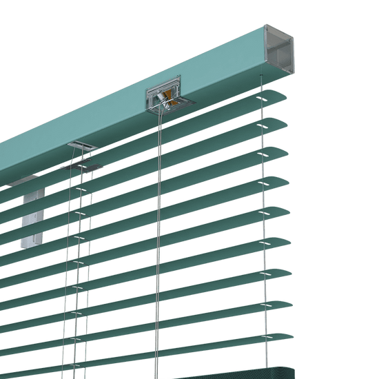 Tenda veneziana in alluminio con lamelle orientabili da 15 mm.